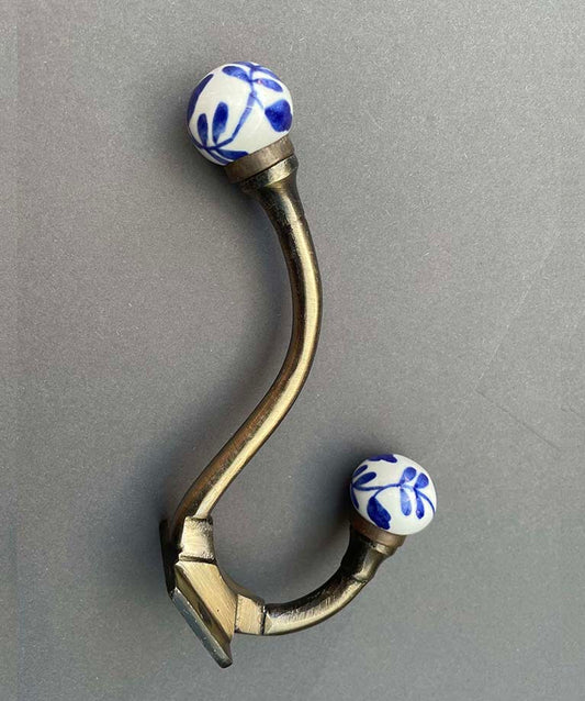 Einzelne Garderobenhaken mit Florale Muster - Blau und weiß