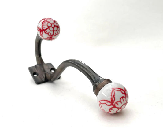 Einzelne Garderobenhaken mit rote Blume in Vintage Stil