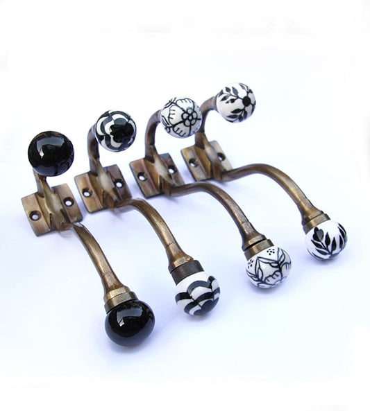 Einzelne Garderobenhaken - Schwarz-weiße Blumen und Streifen