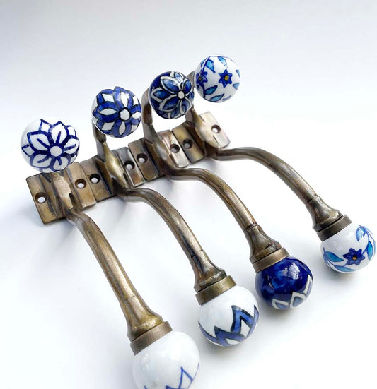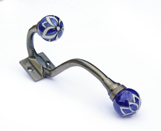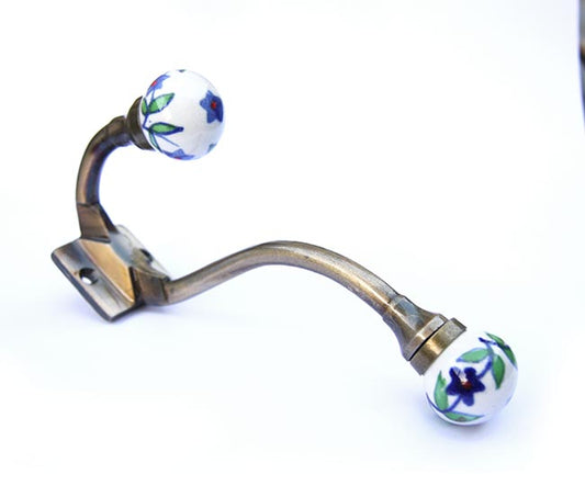 Einzelne Garderobenhaken mit Florale Muster - Blau und weiß