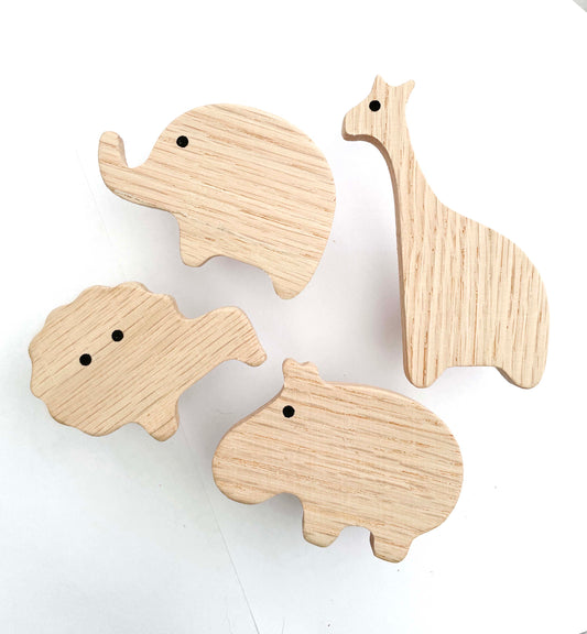Tier Wandhaken & Möbelgriffe aus Holz. Tierische Haken aus Eiche in Skandinavischen Design Giraffe Nilpferd Elefant Löwe