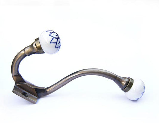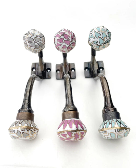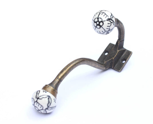 Crochets individuels de vestiaire style vintage - blanc avec fleurs noires