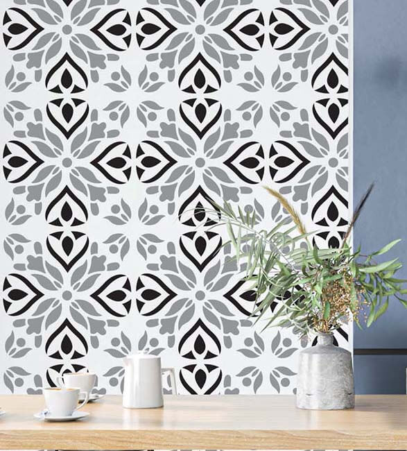 SEVILLA - Terrassenplatten Schablone - Moderne Blumenschablone für die Wand - Fliesen Schablone